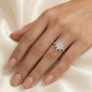 ANEL ESTRELA CADENTE CRAVEJADO BANHADO A PRATA 925