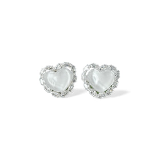 BRINCO PEQUENO CORAÇÃO PEDRA DE VIDRO PESSEGO BANHADO A PRATA 925