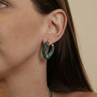BRINCO PIZZA ZIRCONIA GRANDE CRAVEJADA COM ZIRCONIA BAGUETE ROXA BANHADO A PRATA