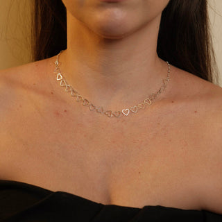 Colar com Pingentes de coraçoes e Detalhes Tubulares Banhado a Prata 925