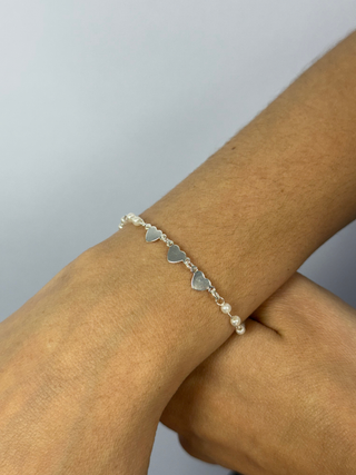 PULSEIRA INFANTIL PEROLAS 3CORAÇÕES PRATA