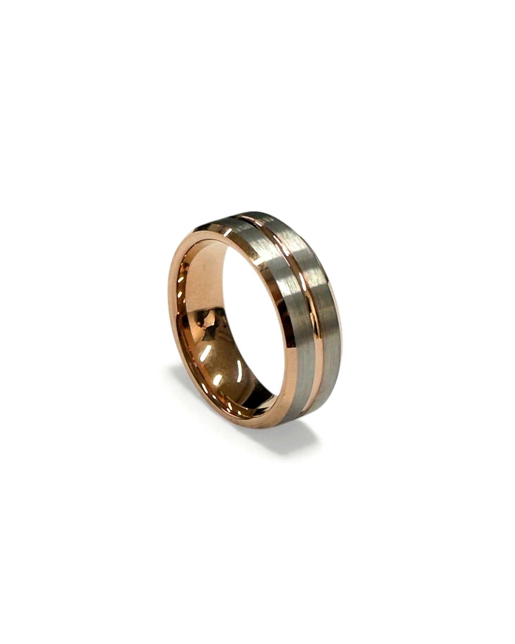 • Nome do produto: Anel Masculino de Aço Bicolor Prata e Rosé