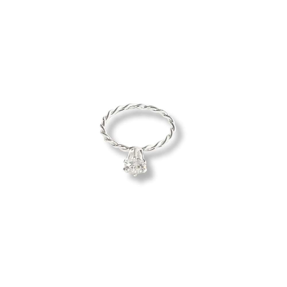 ANEL TORCIDO ZIRCÔNIA SOLITÁRIA PRATA