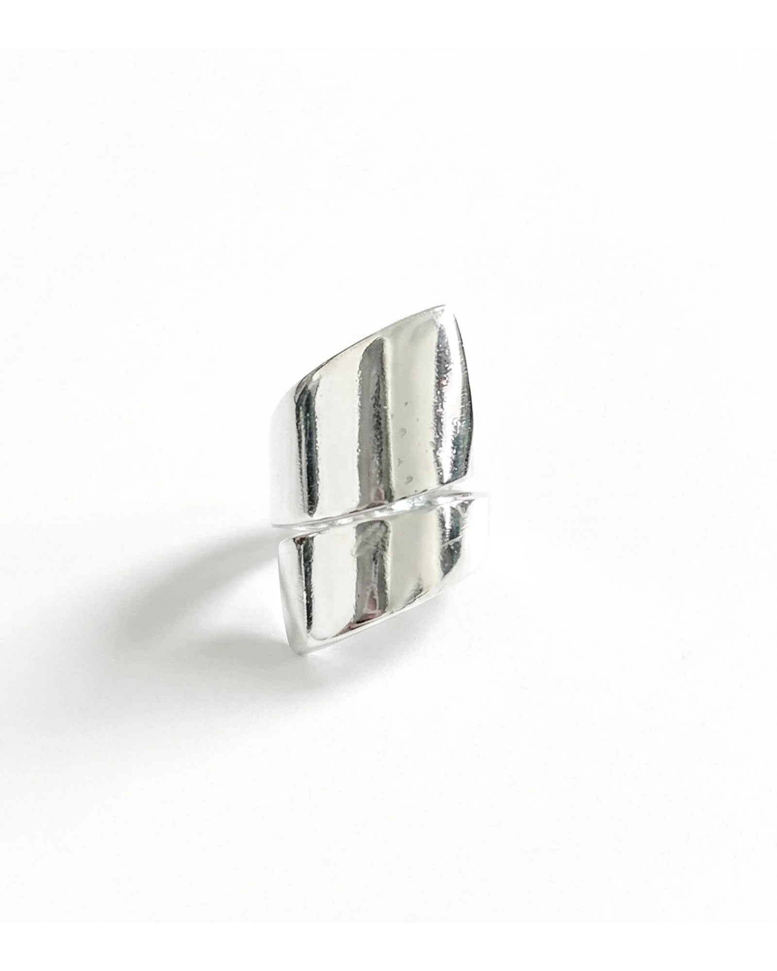 Banhado a prata 925, este anel de voltas da UNA Semijoias aposta em um design moderno e minimalista que preenche o dedo com presença, mas sem exageros. A superfície polida reflete a luz de forma elegante, criando um brilho limpo que combina facilmente com outros anéis ou pode ser usado sozinho como protagonista do look.