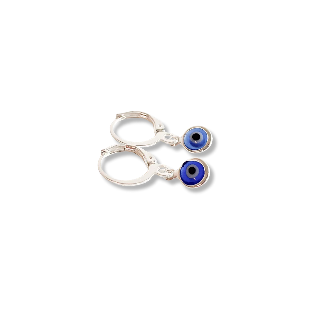 ARGOLA FECHO ALAVANCA OLHO GREGO AZUL PRATA