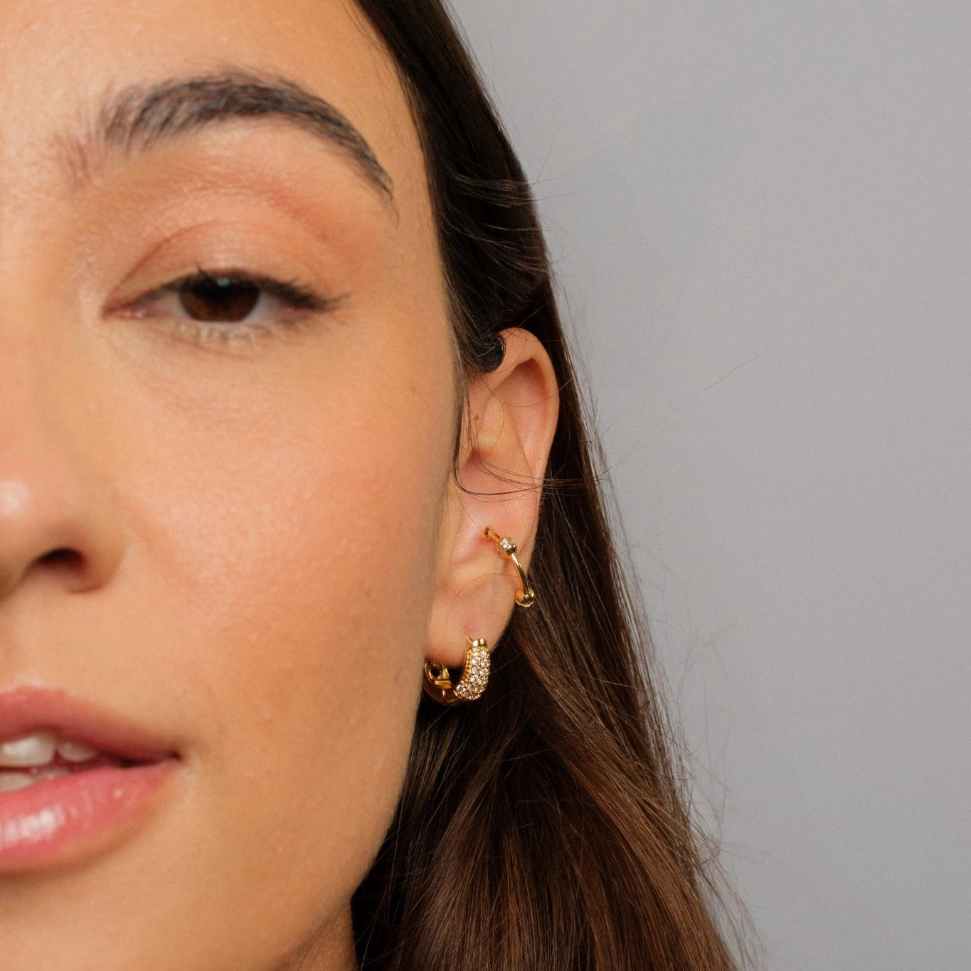 ARGOLA MEDIA CRAVEJADA DE ZIRCONIAS BANHADA A OURO 18K