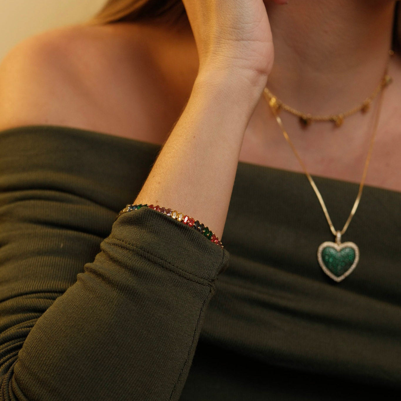 • Nome do produto: Bracelete Cravejado Zircônia Colorida Banhado a Ouro 18k