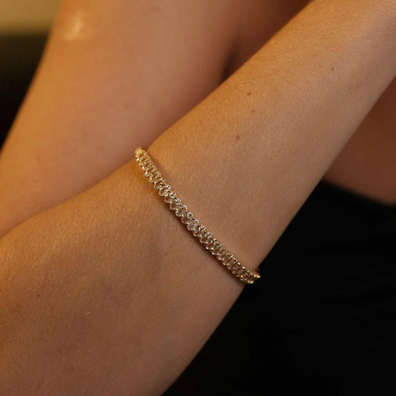O banho em ouro 18k, aliado ao acabamento delicado e fino, confere aparência de joia clássica, atemporal e extremamente versátil. Ele combina com relógios, outras pulseiras e braceletes, funcionando tanto no dia a dia quanto em produções mais elaboradas para jantares, festas e eventos especiais. Uma semijoia fina que se adapta a diferentes estilos, do básico elegante ao glamouroso.