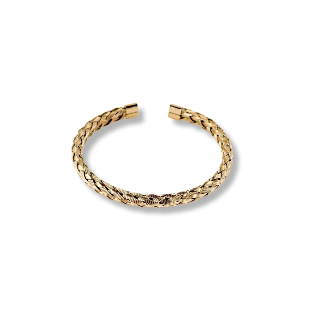 BRACELETE DE AÇO DOURADO MASCULINO RÍGIDO TRANÇADO