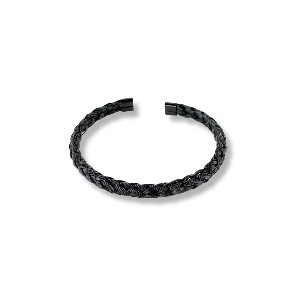 BRACELETE DE AÇO PRETO MASCULINO RÍGIDO TRANÇADO