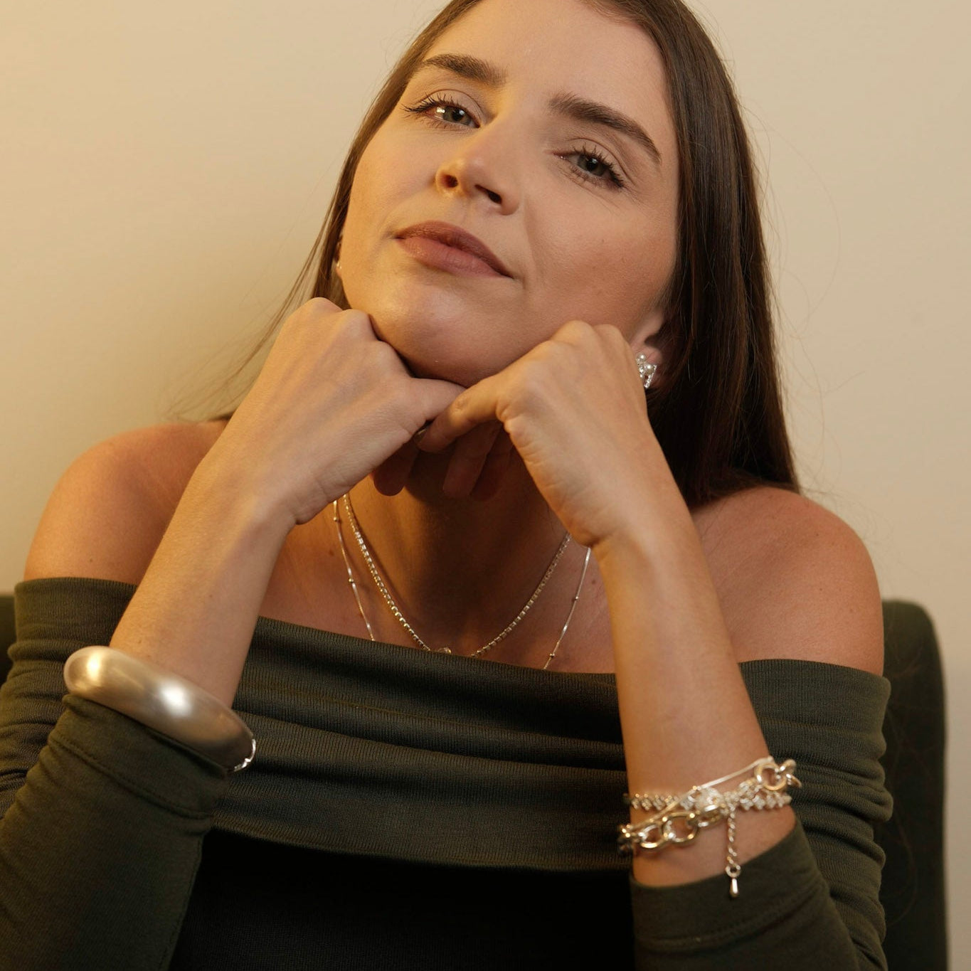 Se você procura um bracelete prateado com cara de peça de passarela, este maxi oval fosco da UNA é a escolha perfeita para transformar qualquer produção com um toque de luxo contemporâneo.