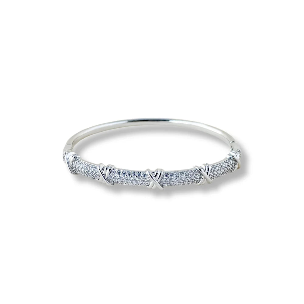 BRACELETE X CRAVEJADO DE ZIRCONIAS BANHADO A RÓDIO