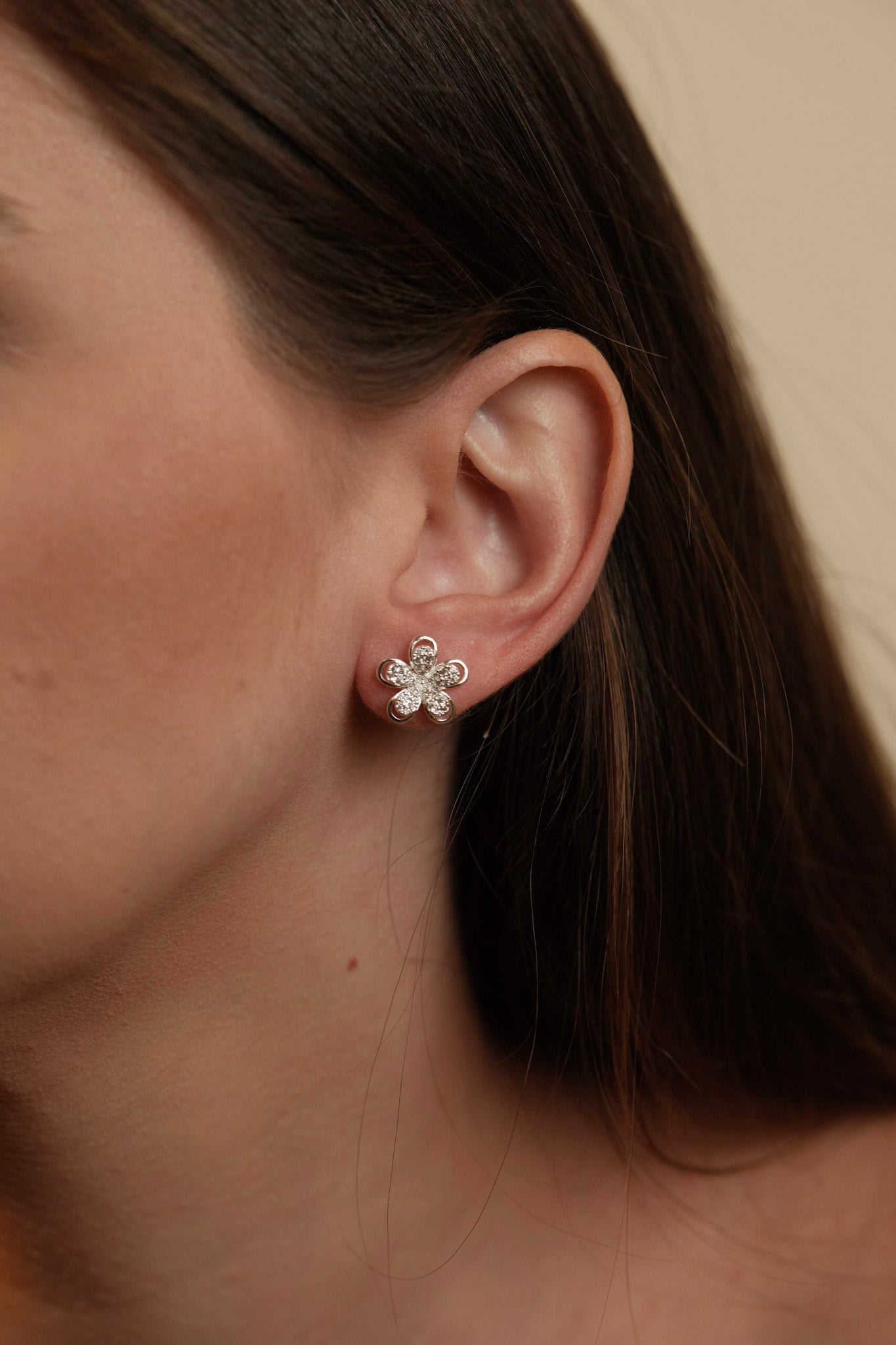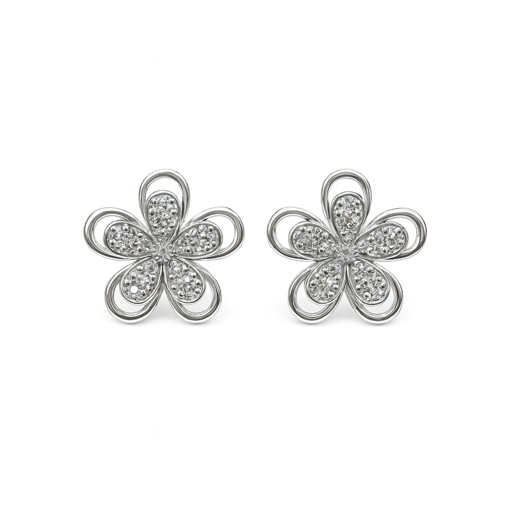 BRINCO FLOR CRAVEJADA DE ZIRCONIAS BANHADO A PRATA 925