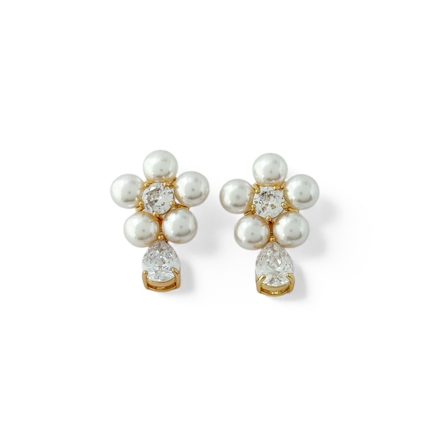 BRINCO FLOR DE PEROLA COM GOTA DE ZIRCONIA BANHADO A OURO 18K