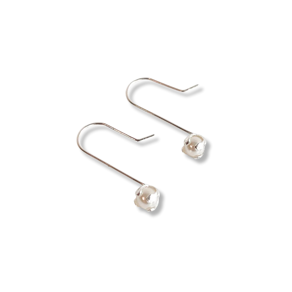 BRINCO GANCHO COM PÉROLA DELICADO BANHADO A PRATA 925