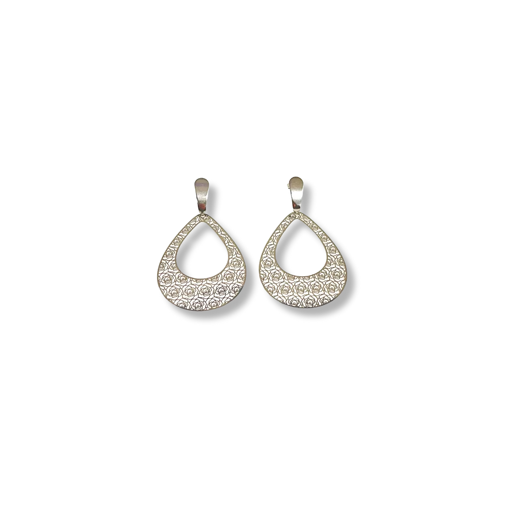 BRINCO GOTA RECORTADA COM FLORES AÇO