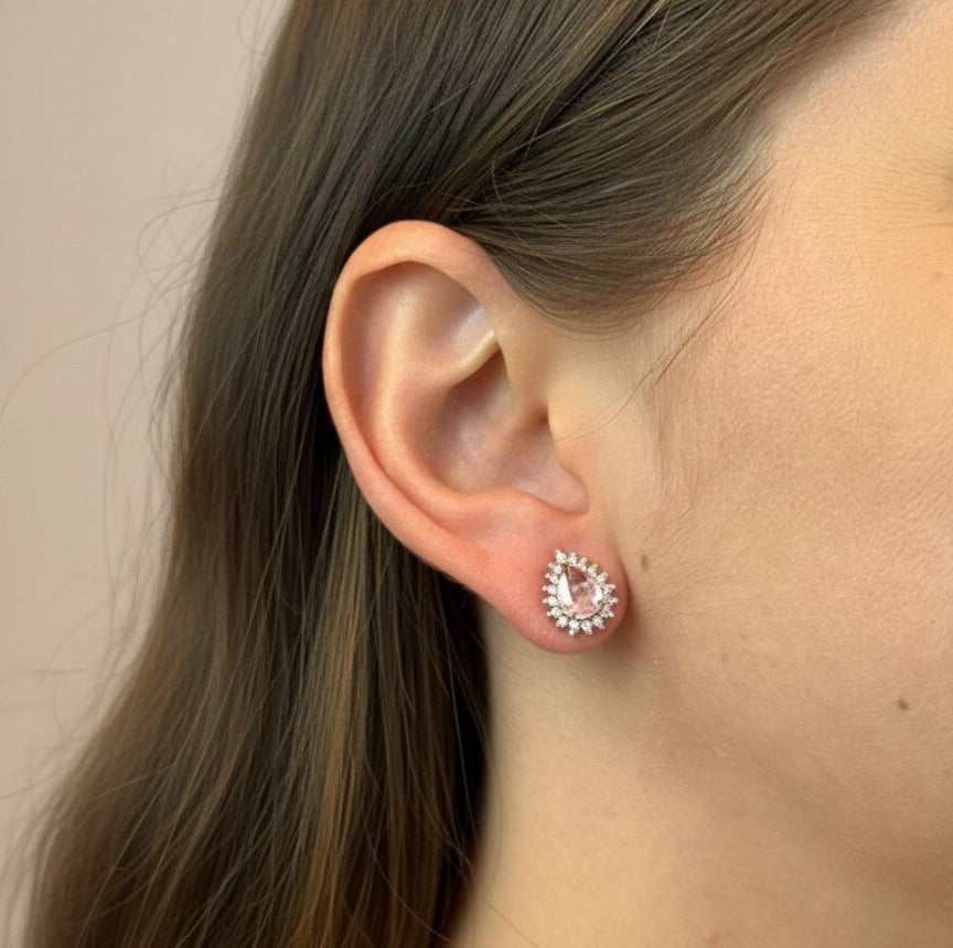 BRINCO GOTA ROSA COM ZIRCONIAS BANHADO A RÓDIO