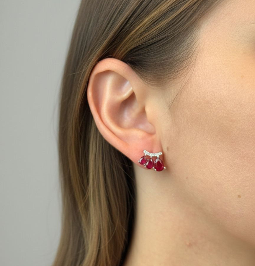 BRINCO GOTAS DEGRADE RUBI BANHADO A OURO 18K