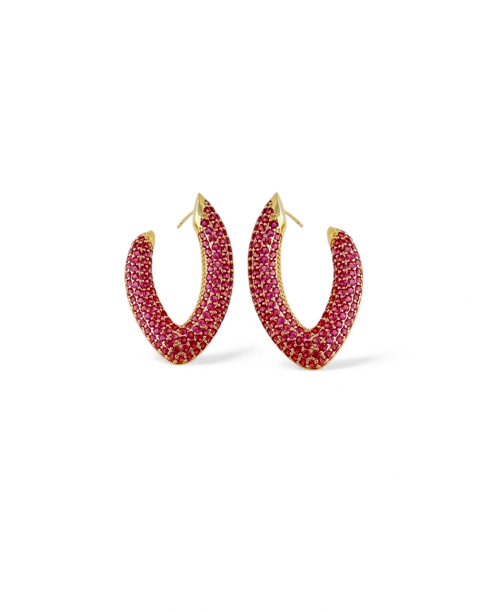 • Estilo/formato: brinco médio em formato de V cravejado com zircônias rosas