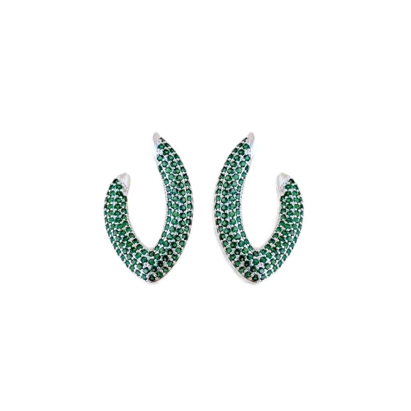 • Estilo/formato: brinco médio em formato de V cravejado com zircônias verdes