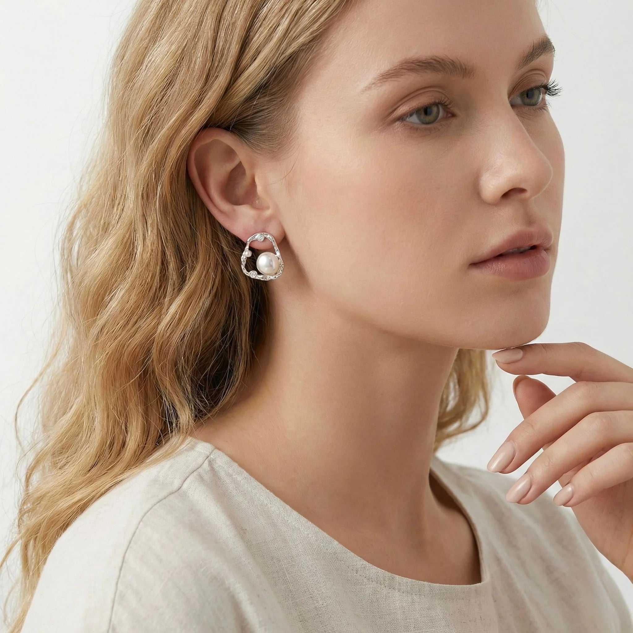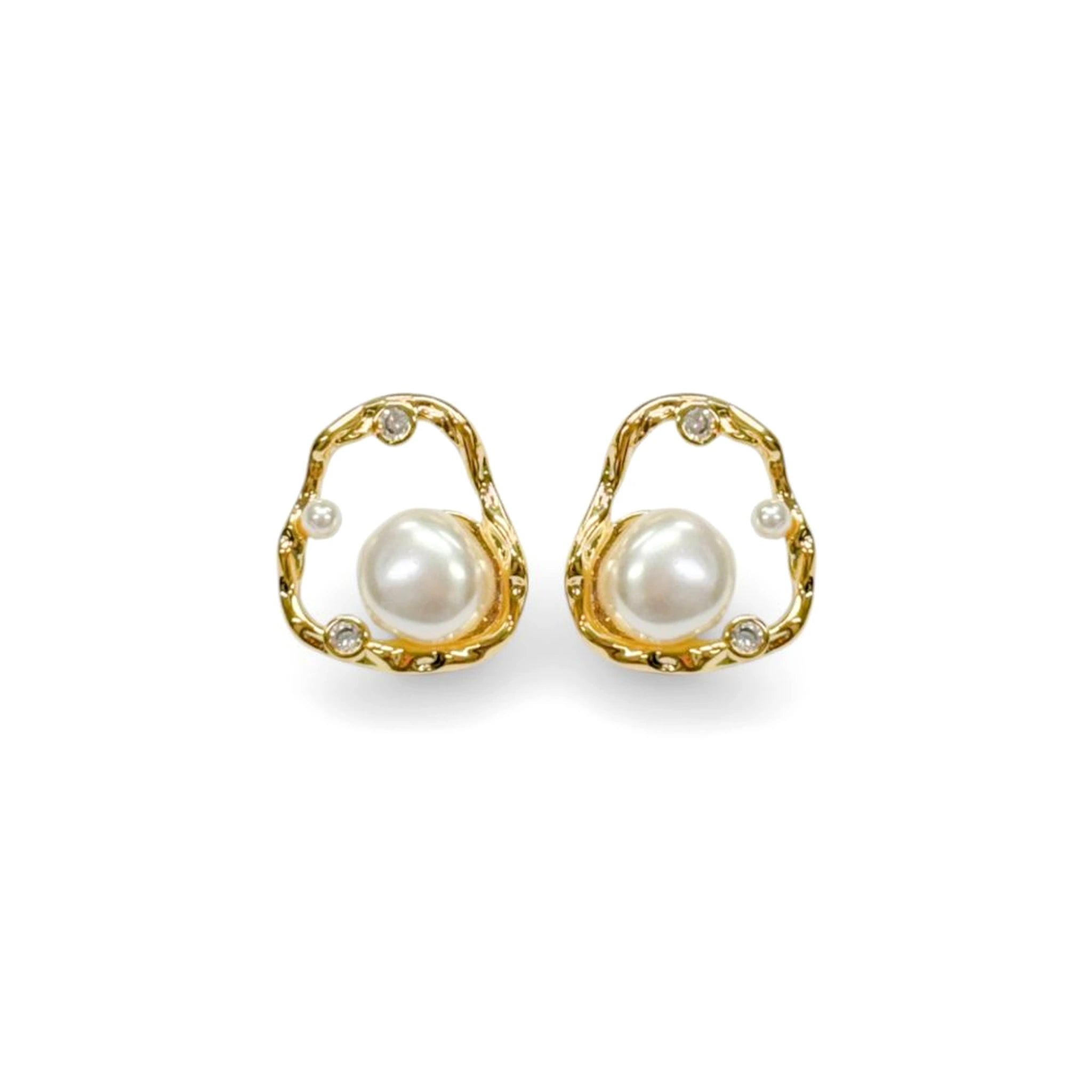 Disponível nas versões banhada a prata e banhada a ouro, o brinco apresenta acabamento polido de alta qualidade, que realça os detalhes irregulares do contorno e o charme clássico das pérolas. Seu tamanho médio proporciona presença equilibrada, ideal para quem busca elegância sem excessos.