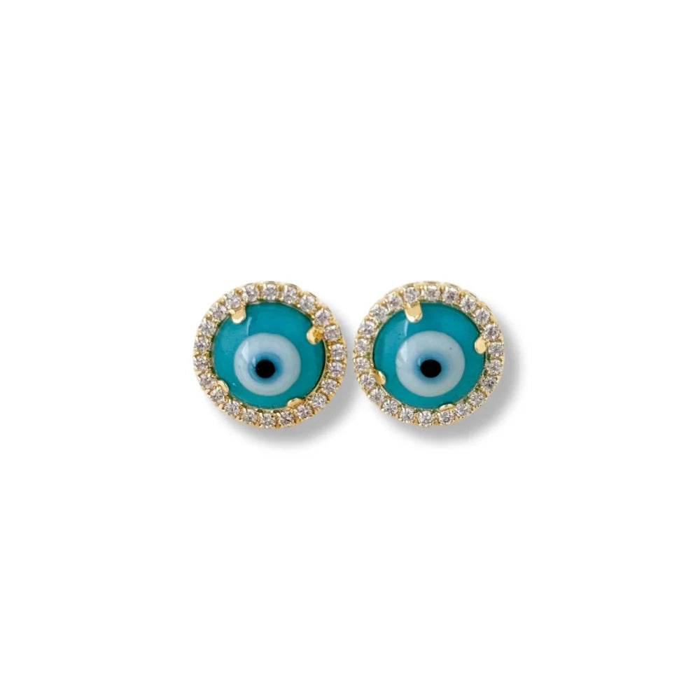 BRINCO OLHO GREGO CRAVEJADO BANHADO A OURO 18K