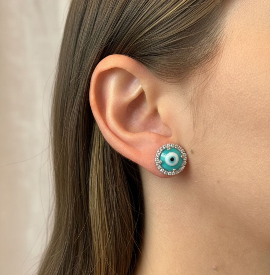 BRINCO OLHO GREGO CRAVEJADO BANHADO A RÓDIO