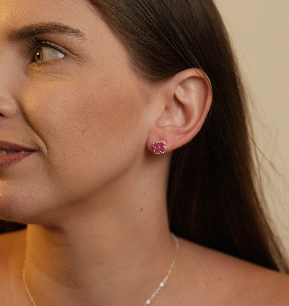 O brinco pequeno flor rosa banhado a prata 925 da UNA Semijoias e Aço é aquele detalhe delicado que deixa qualquer look mais leve e feminino. O design em forma de flor, com centro delicado e contorno prateado, traz um ar romântico e ao mesmo tempo moderno, perfeito para quem gosta de peças que chamam atenção pelo charme, e não pelo tamanho.