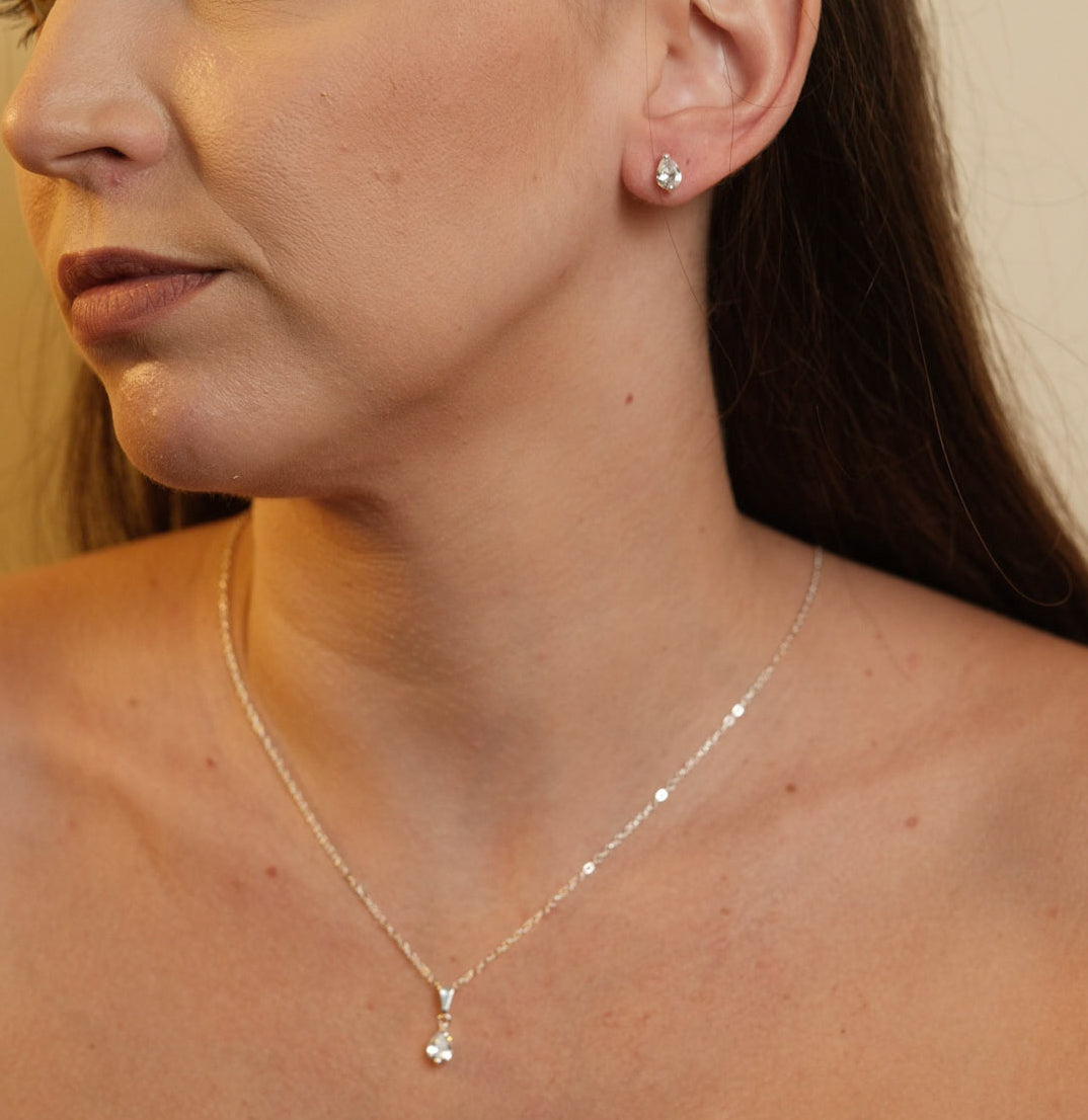 • Material e acabamento: metal com banho em prata 925 e pedra em formato de gota