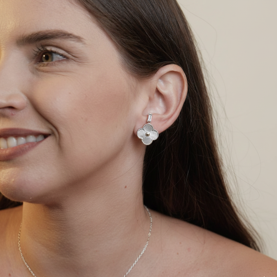 Escolha o brinco trevo frisado banhado a prata 925 para iluminar seus looks com um toque de sorte e elegância.