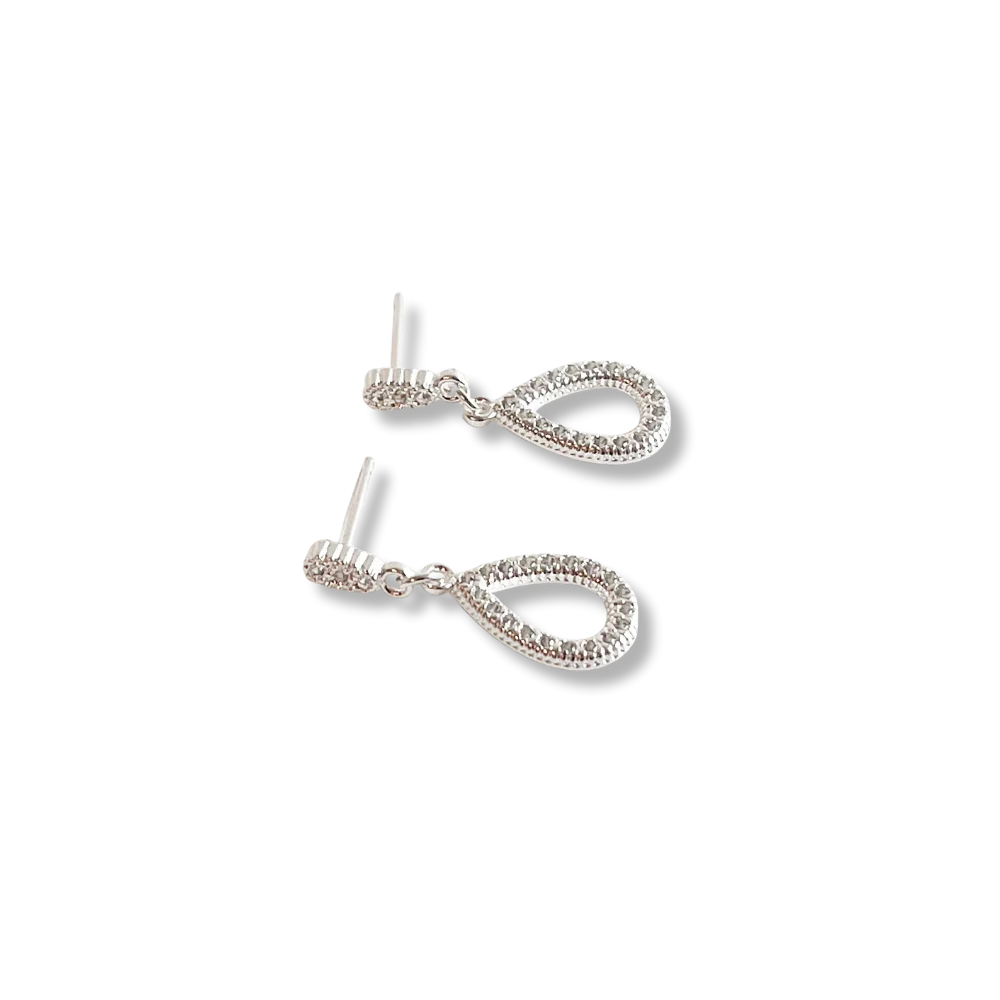 BRINCO PINGENTE GOTA VAZADA CRAVEJADA PRATA