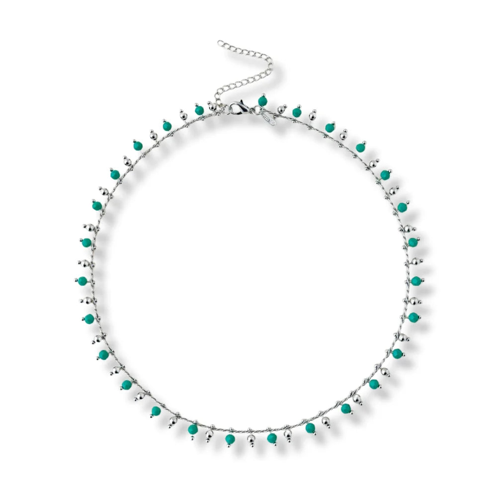 CHOKER BOLINHA TURQUESA BANHADO A RÓDIO
