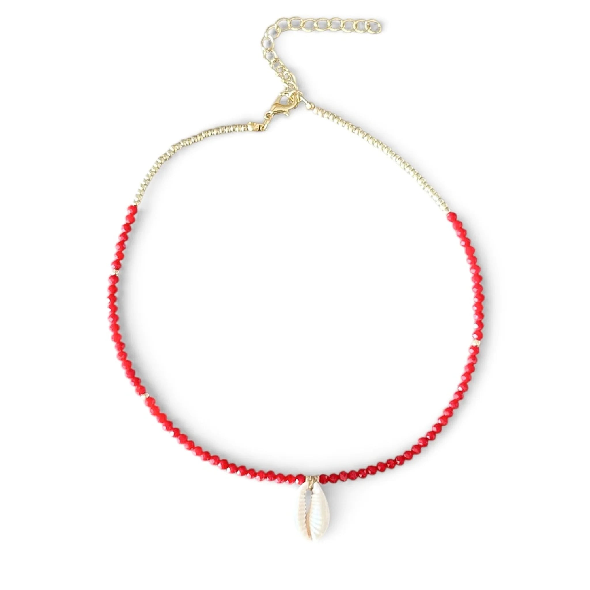 • Nome do produto: Choker Cristal Vermelho com Conchinhas em Resina Bijuteria Fina