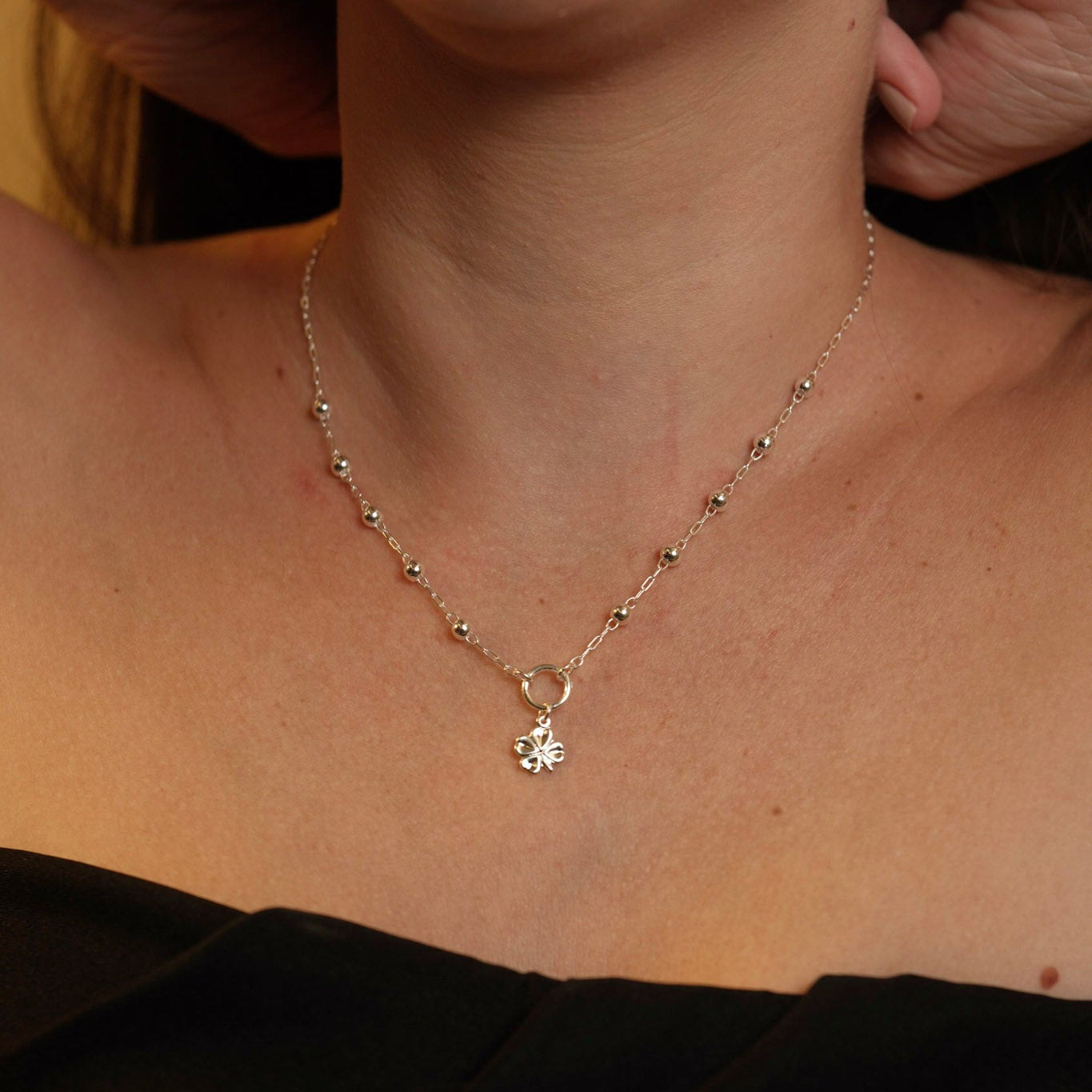 • Nome: Colar com Bolinhas e Pingente de Flor Banhado a Prata 925