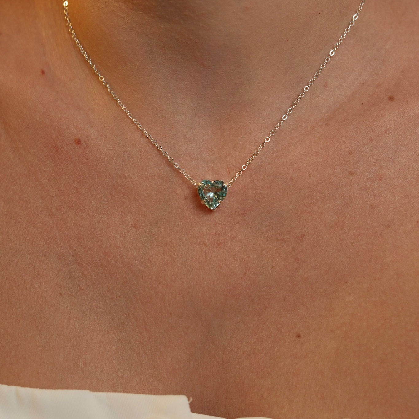 O brilho leve da pedra de vidro azul claro em formato de coração dá a este colar banhado a prata 925 da UNA Semijoias e Aço um ar delicado e sofisticado. O pingente, posicionado no centro da corrente, reflete a luz com suavidade, criando um ponto de cor sutil no colo.