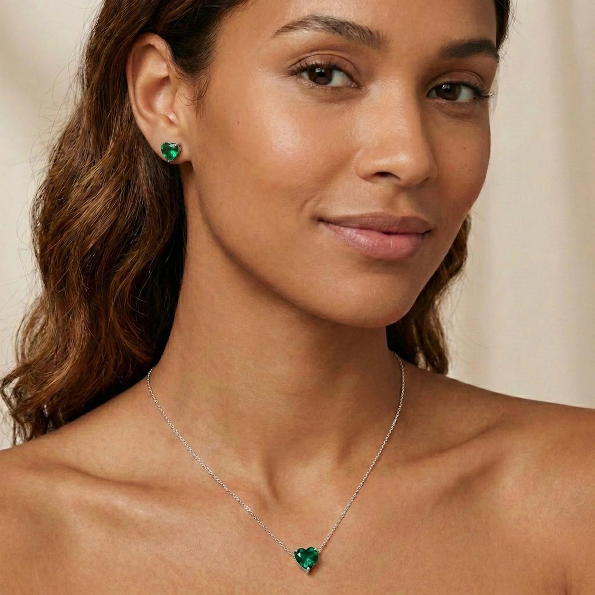 • Nome do produto: Colar Coração Pedra de Vidro Verde Banhado a Prata 925