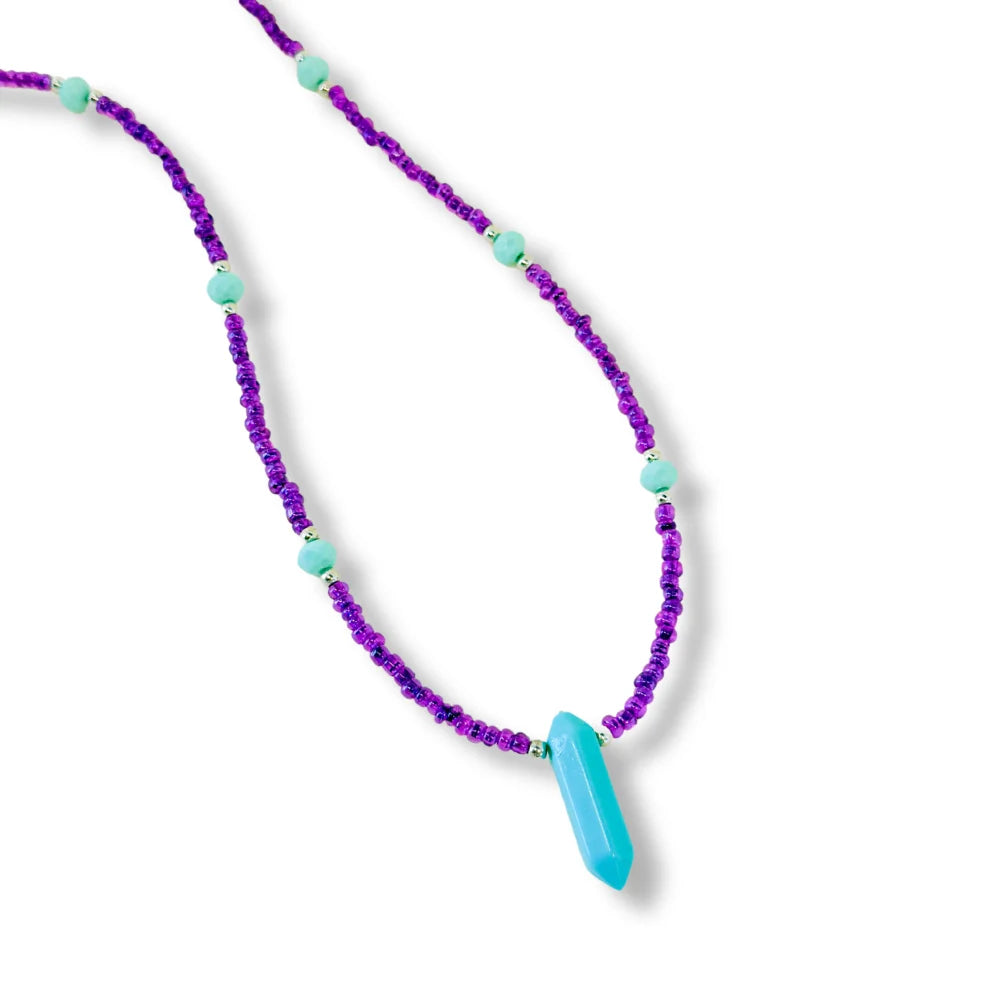 COLAR DE RESINA COM PINGENTE DE CRISTAL ROXO BIJUTERIA FINA