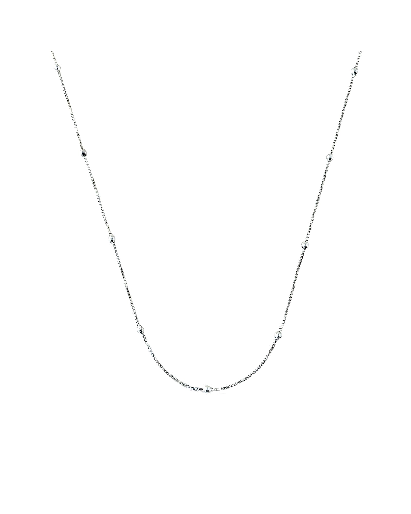 Um fio delicado pontuado por pequenas esferas dá a este colar banhado a prata 925 da UNA Semijoias e Aço um brilho discreto e elegante. As bolinhas distribuídas ao longo da corrente criam um efeito sutil, que acompanha o contorno do colo com leveza.