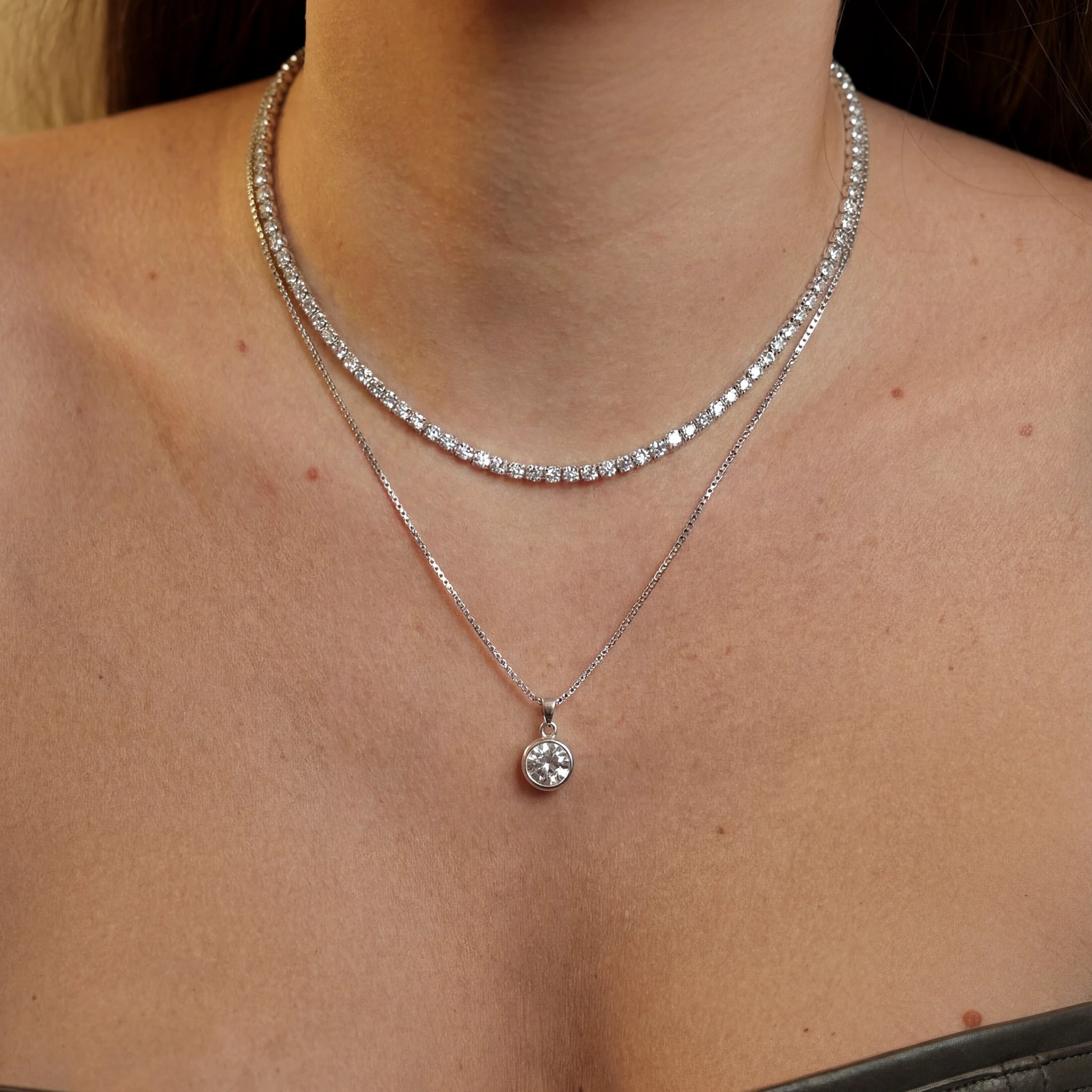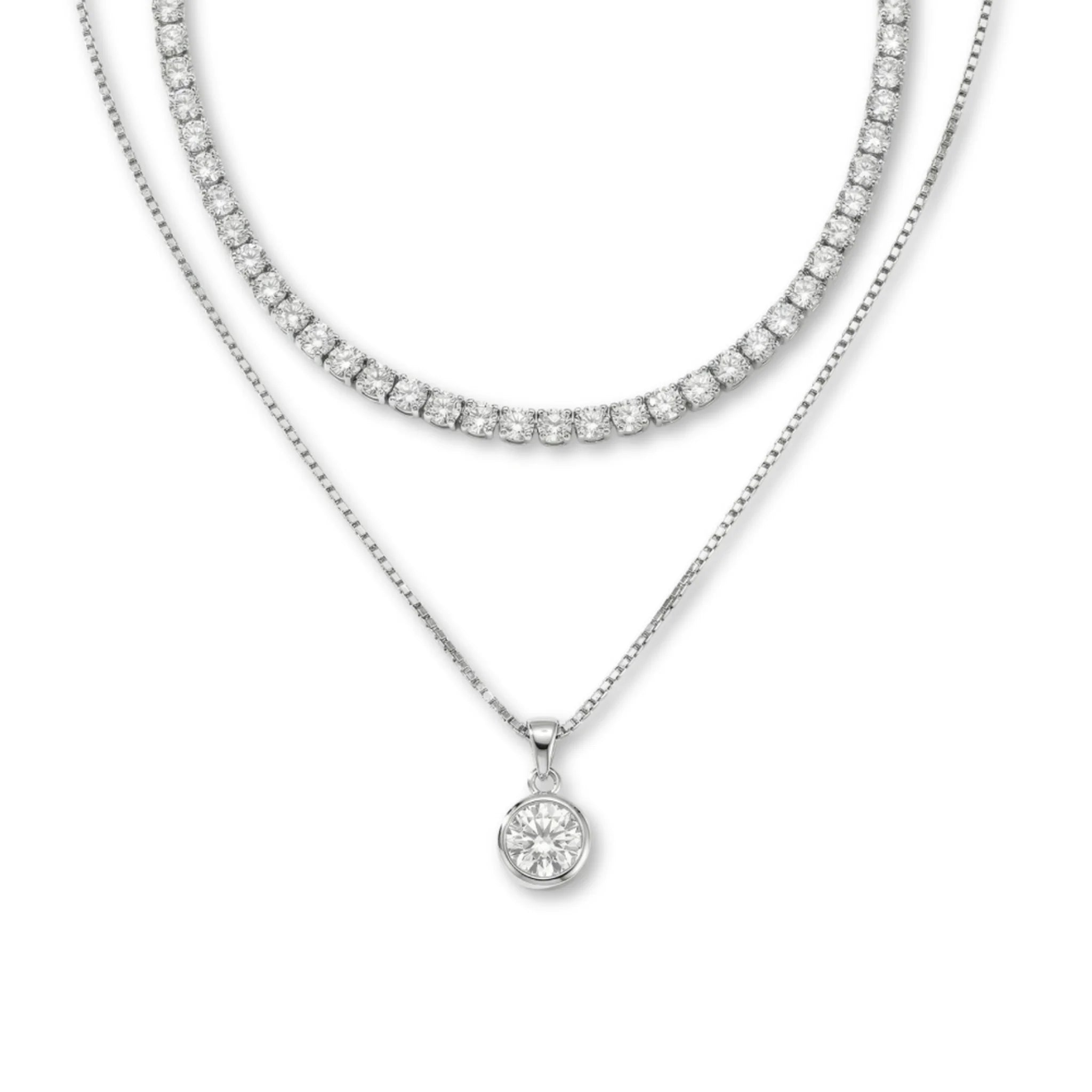 • Nome do produto: Colar Duplo Riviera e Ponto de Luz Banhado a Prata 925