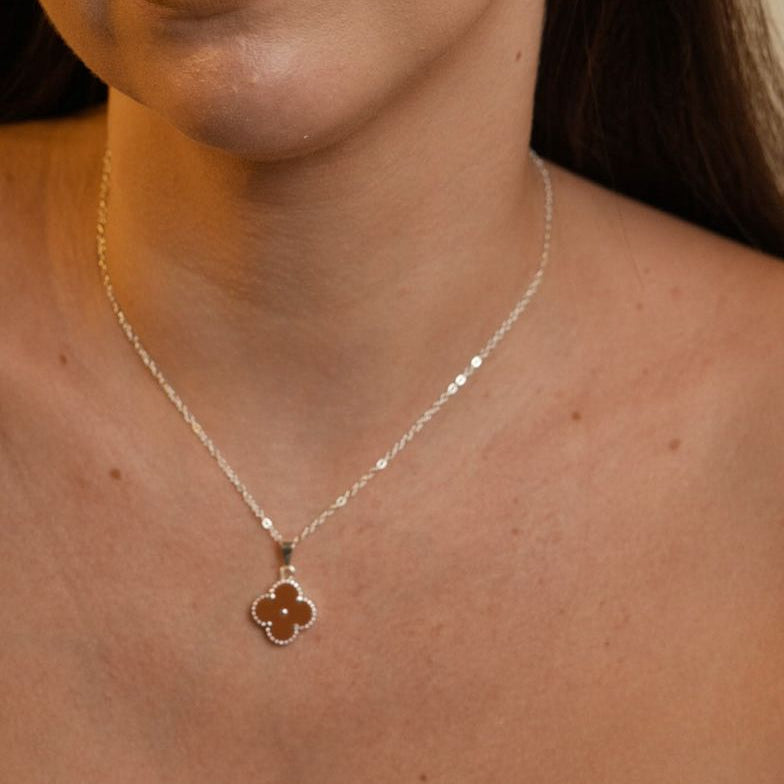 Este colar flor marrom banhado a prata 925 da UNA Semijoias e Aço é a escolha perfeita para quem busca uma semijoia delicada, sofisticada e ao mesmo tempo atemporal. O pingente em tom marrom traz um ar elegante e moderno, criando um contraste discreto com o banho prateado, ideal para compor desde looks básicos até produções mais elaboradas.