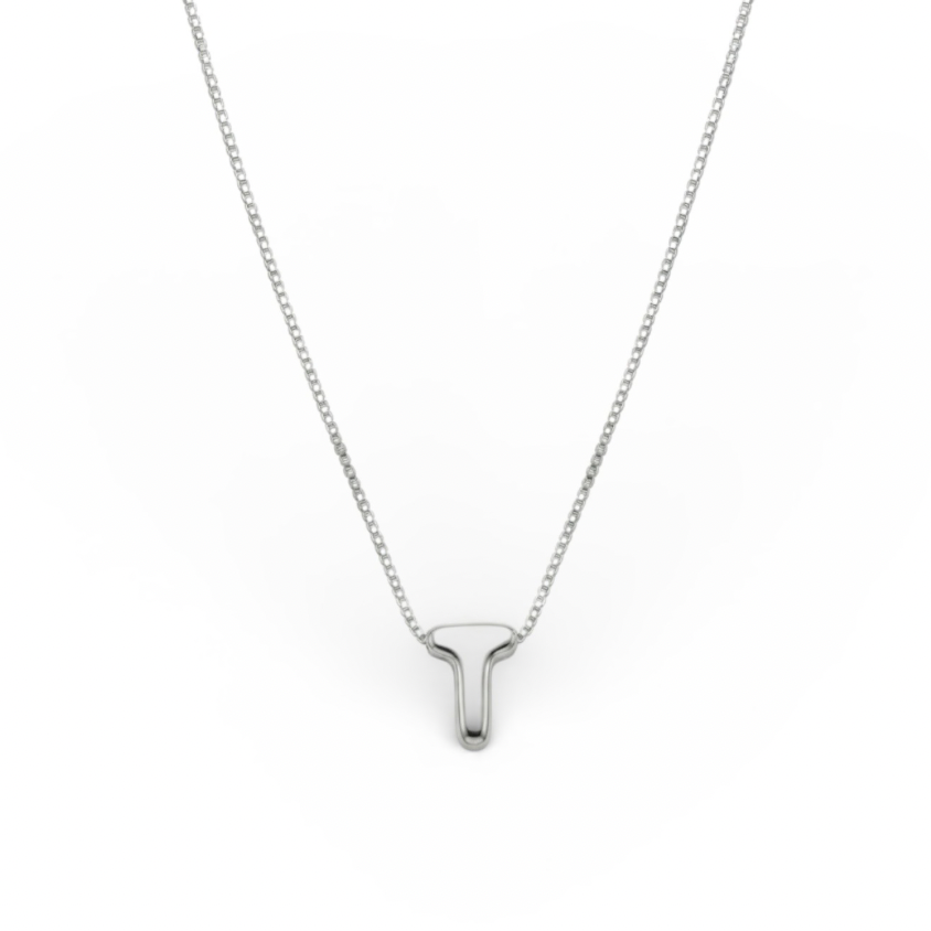 • Estilo/formato: minimalista, delicado, com pingente de letra bold central