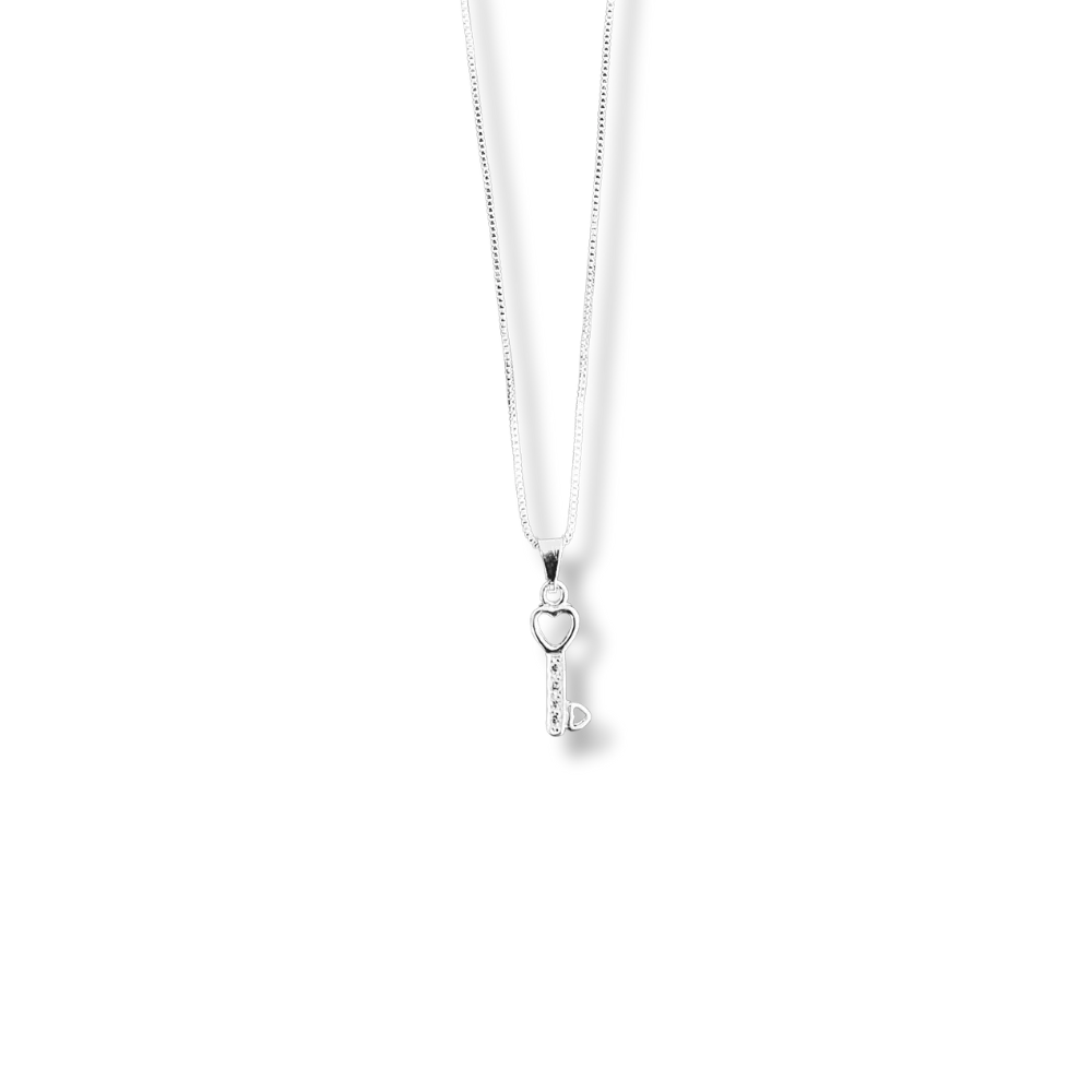 COLAR PINGENTE CORAÇÃO CHAVE CRAVEJADA PRATA