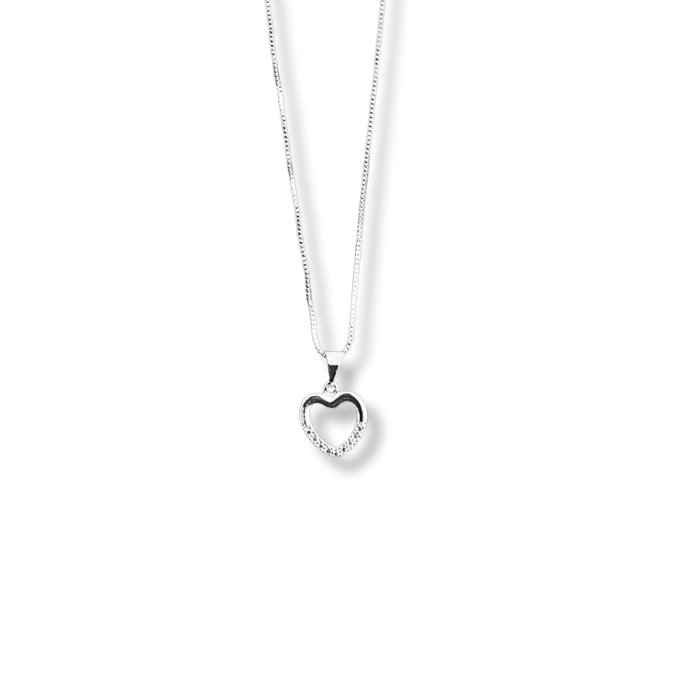 COLAR PINGENTE CORAÇÃO VAZADO MEIO CRAVEJADO PRATA