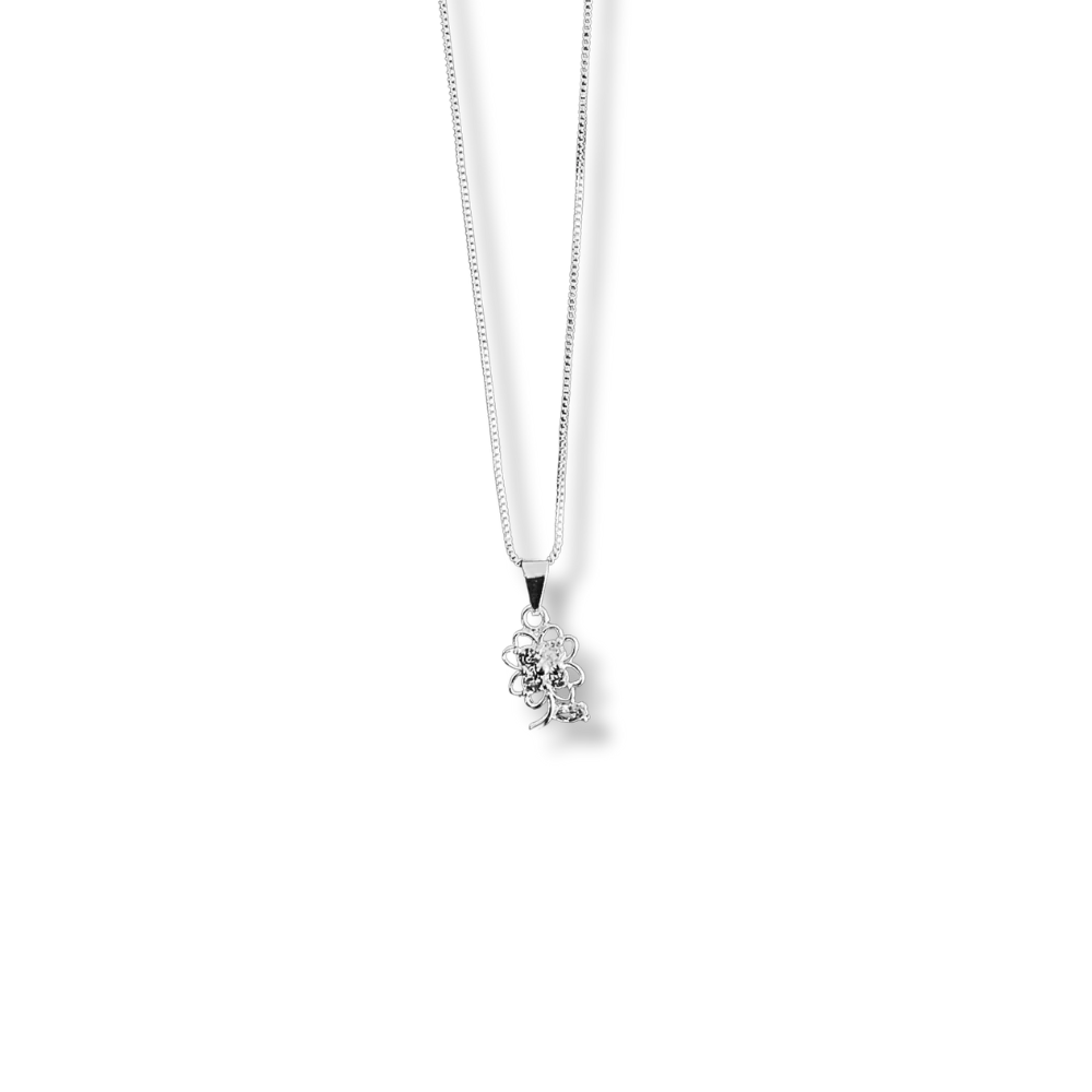 COLAR PINGENTE FLOR 4CRISTAIS PRATA