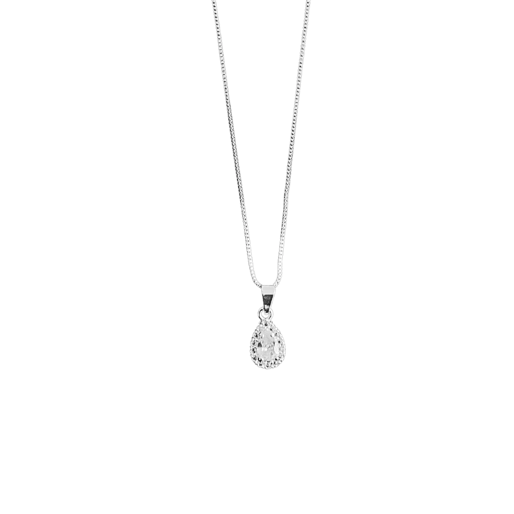 COLAR PINGENTE GOTA ZIRCONIA CENTRAL PRATA