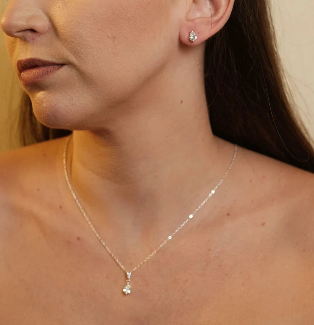 Delicado, versátil e atemporal, o colar ponto de luz gota P banhado a prata 925 é uma peça essencial no porta-joias, perfeito para se presentear ou surpreender alguém especial com a elegância da UNA Semijoias.