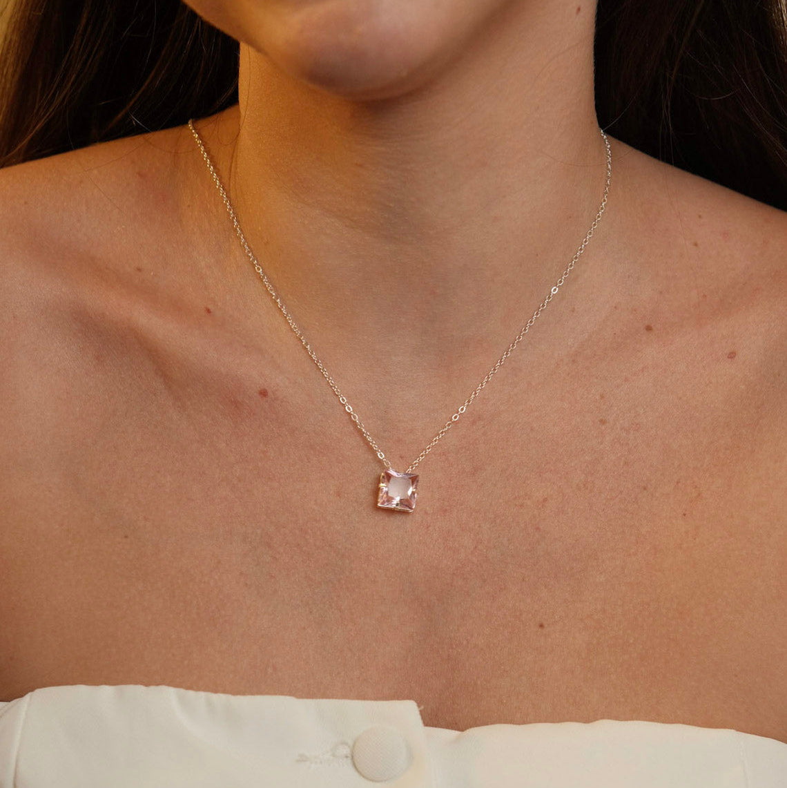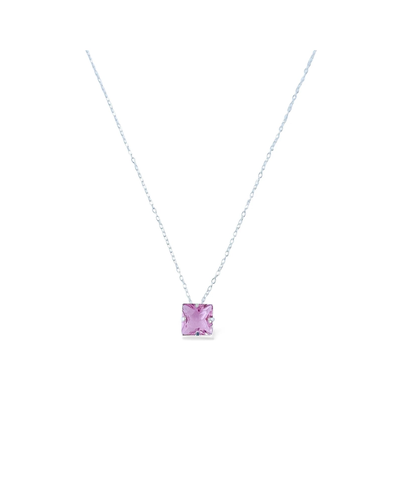 • Nome do produto: colar quadrado pedra de vidro rosa banhado a prata 925