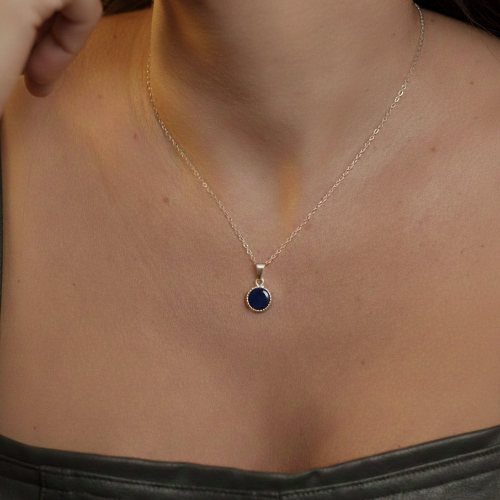 O colar redondo pequeno azul banhado a prata 925 da UNA Semijoias e Aço é aquele acessório que entra no look sem fazer esforço e, mesmo assim, muda tudo. O pingente circular em azul intenso traz um ponto de cor moderno e elegante, enquanto a corrente prateada de acabamento delicado garante a leveza e o brilho na medida certa.