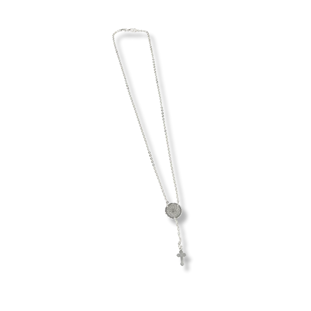 COLAR TERÇO MEDALHA E CRUCIFIXO PRATA