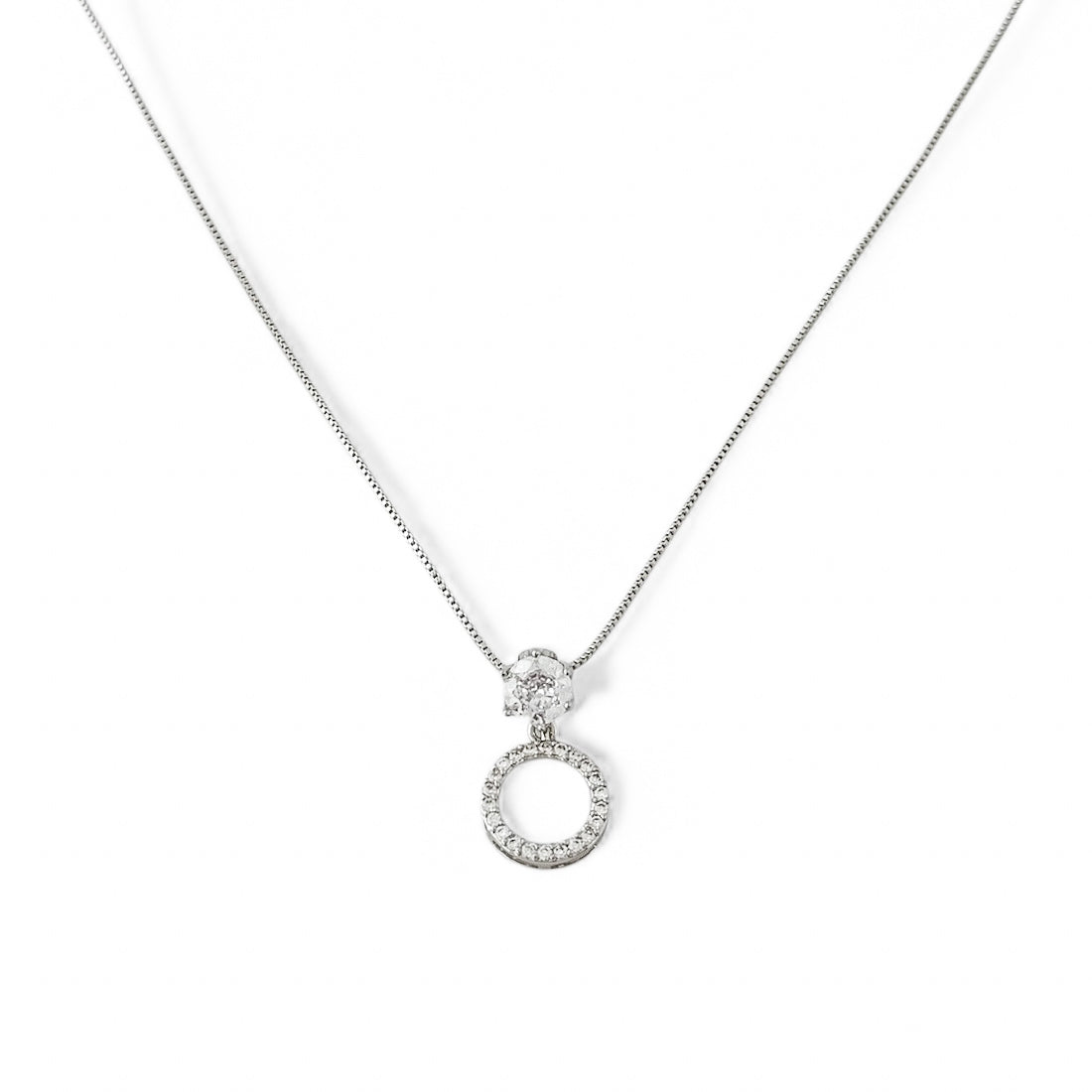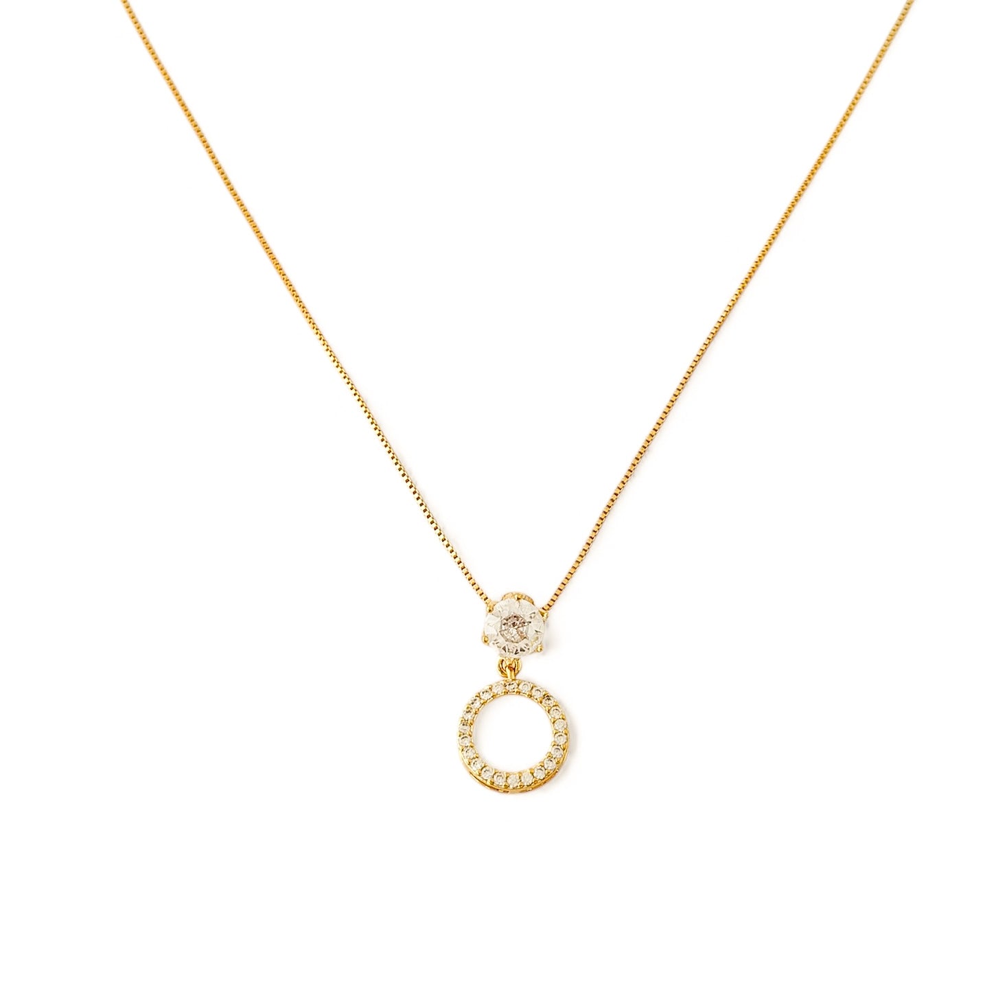 COLAR ZIRCONIA GRANDE COM CIRCULO VAZADO CRAVEJADO BANHADO A OURO 18K